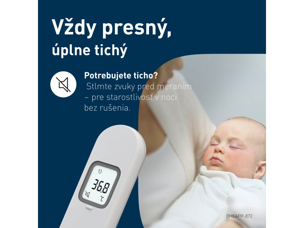 Vďaka pokročilému senzoru vzdialenosti máte istotu správneho umiestnenia teplomera a presných výsledkov. Podsvietený displej uľahčuje čítanie hodnôt aj v tme a režim vypnutého zvuku umožňuje diskrétne meranie bez rušenia okolia.