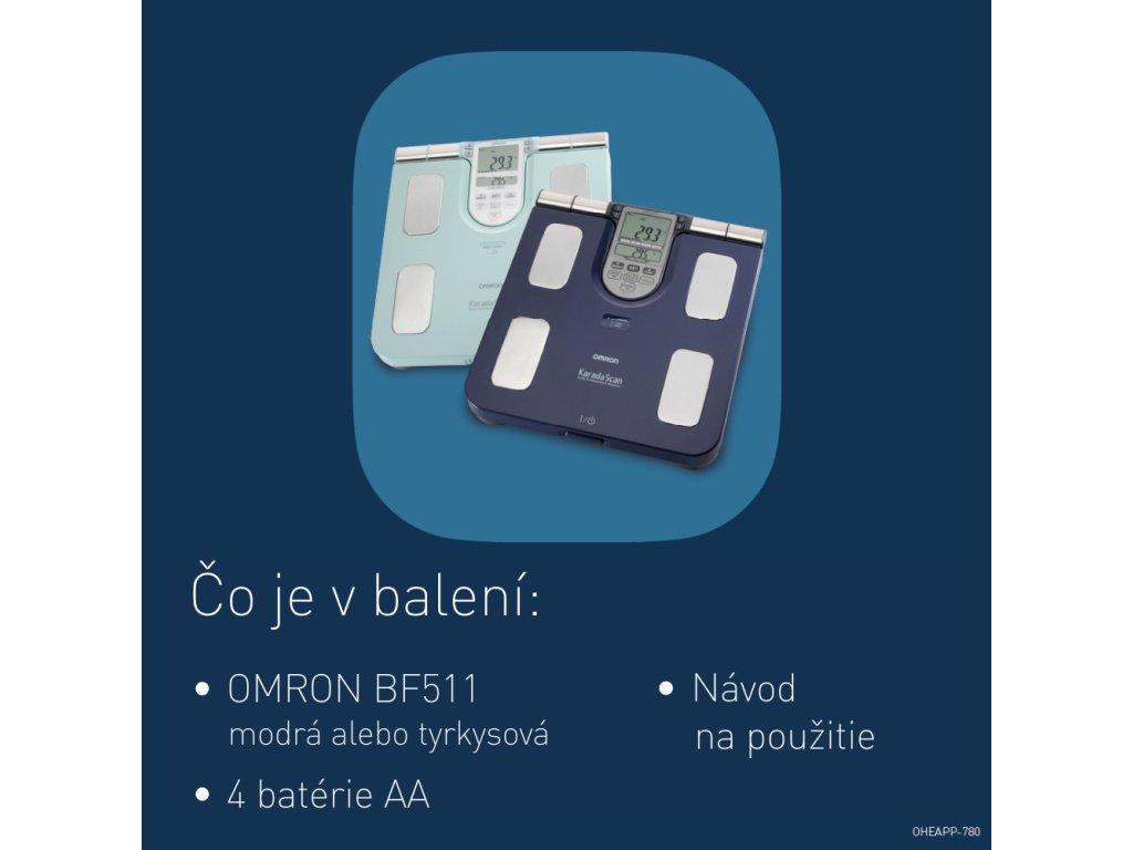 Balenie obsahuje: Digitálna váha s telesnou analýzou OMRON BF-511, 4 batérie AA, návod v slovenčine